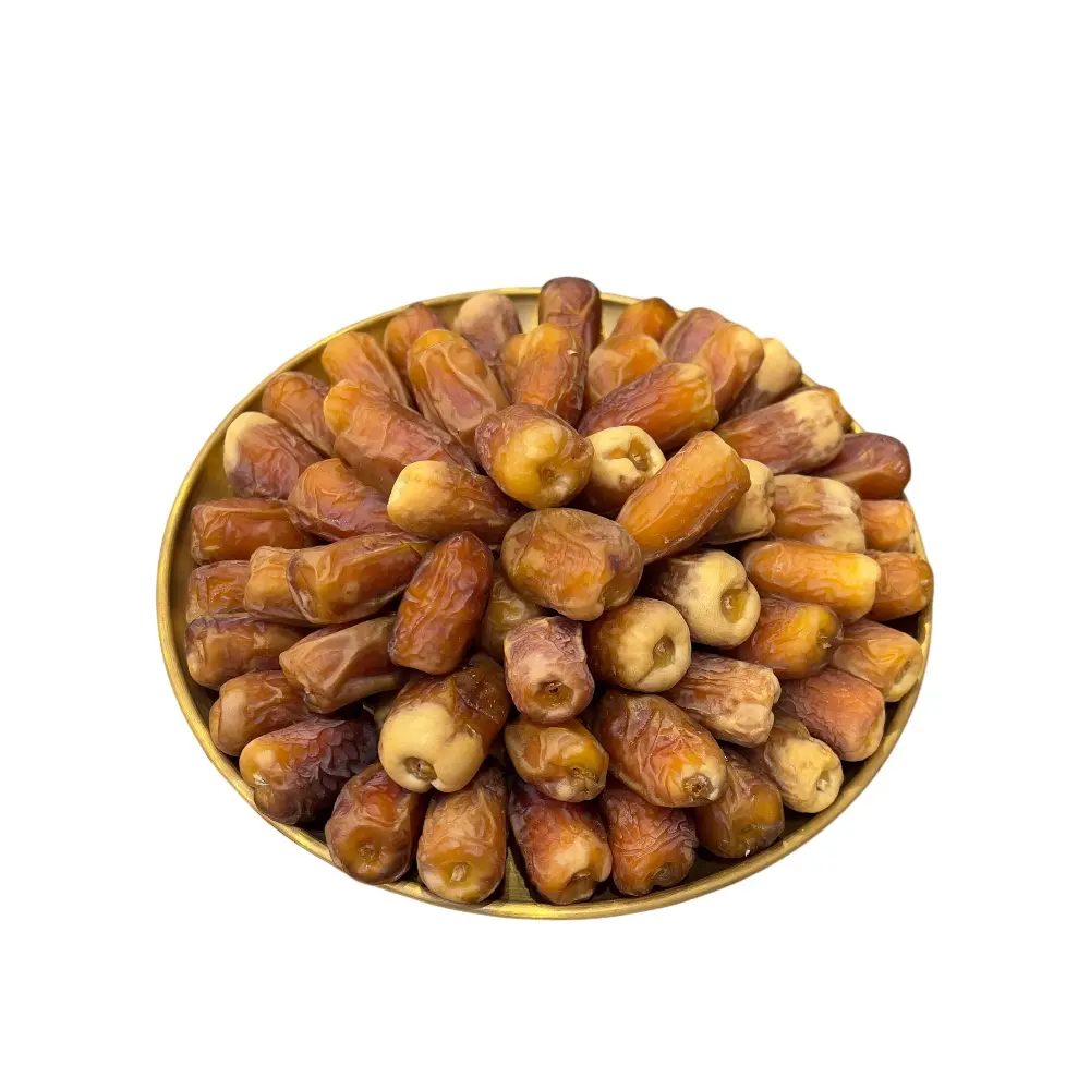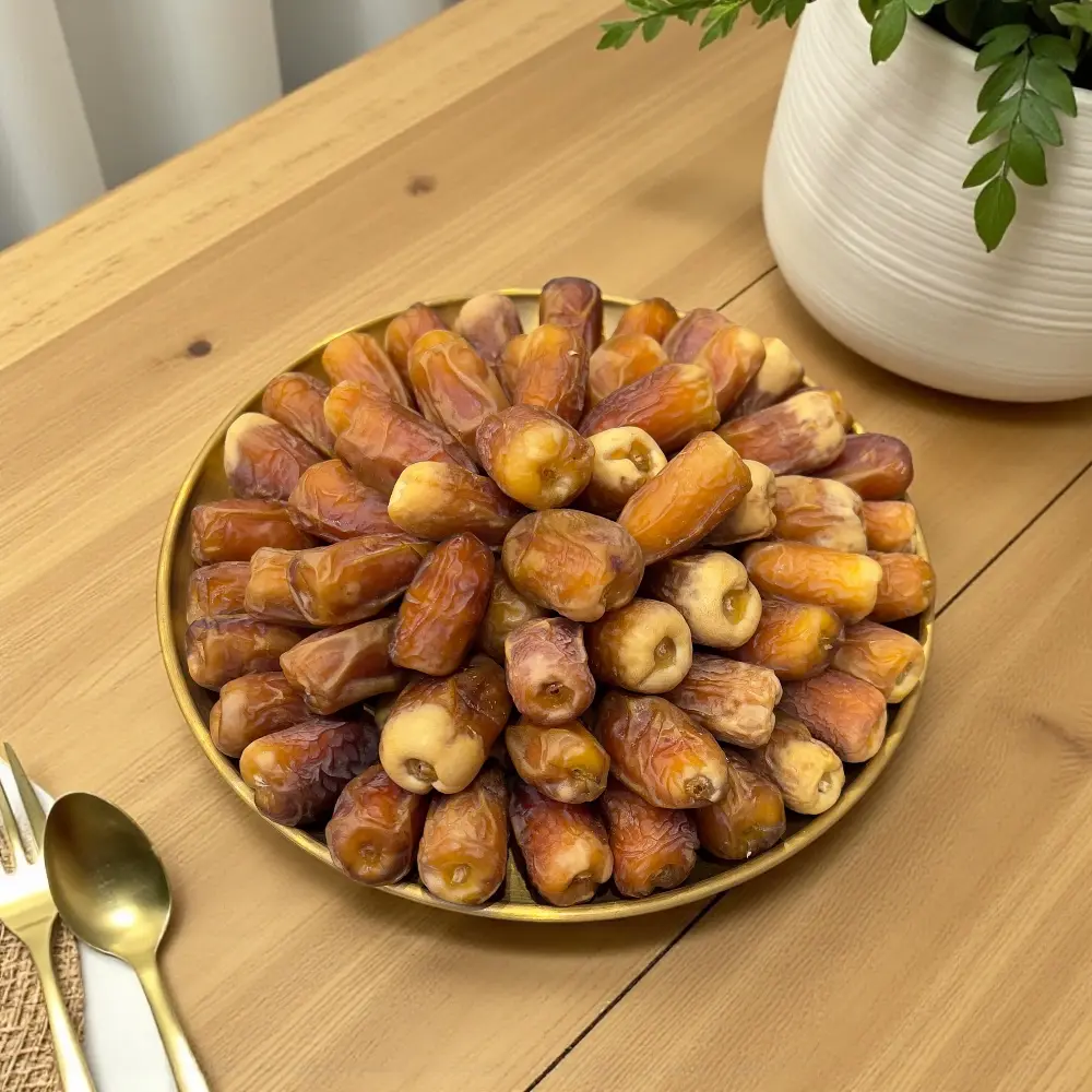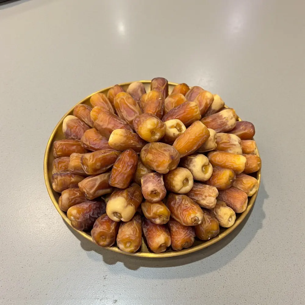 يُعد تمر صقعي فاخر من أشهر وأجود أنواع التمور السعودية، ويتميّز بشكله الفريد الذي يجمع بين لونين جذابين: قاعدة ذهبية وقمة بنية داكنة، مع قوام متوازن وطعم حلو معتدل. يُقدَّم تمر الصقعي غالبًا في مجالس الضيافة والقهوة العربية، ويُعتبر خيارًا مثاليًا لمن يبحث عن تمر فاخر يجمع بين الجودة والمظهر الراقي.