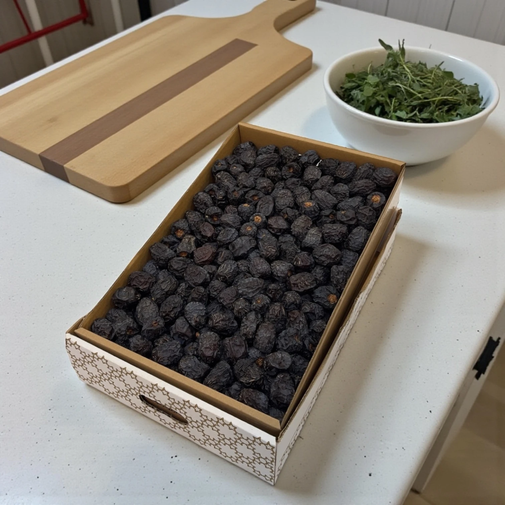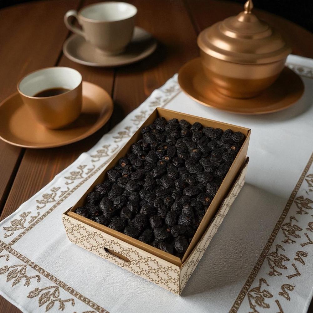 يأتي في كرتون فاخر مطبوع بنقوش جميلة، يحافظ على الجودة والطراوة، ويجعله مناسبًا للإهداء والضيافة.